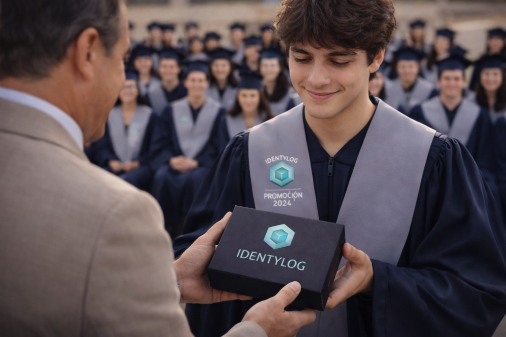 Frente a otros detalles de graduación, Identylog Moments une presentación, tecnología y emoción en un mismo regalo.